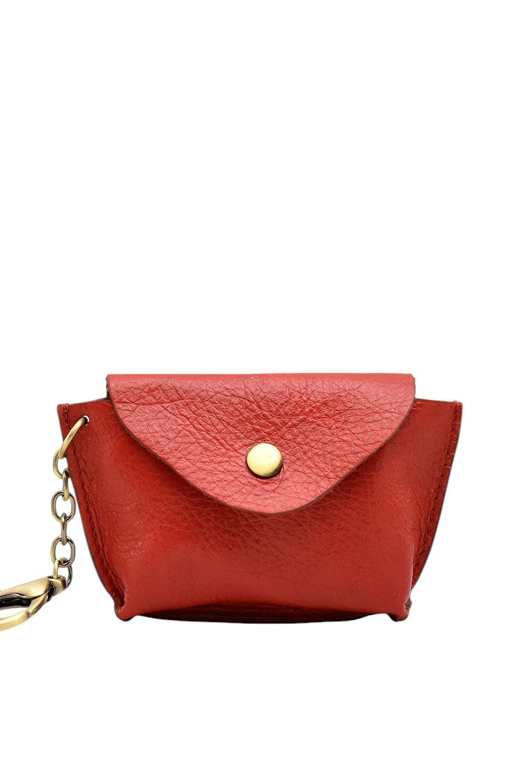 This purse is the perfect place to store loose change since it's made with durable top grain cow leather. This premium material naturally repels moisture and resists heat damage. Secure everything inside with the easy button snap. The inside of this wallet is unlined showing the natural back side of the leather.