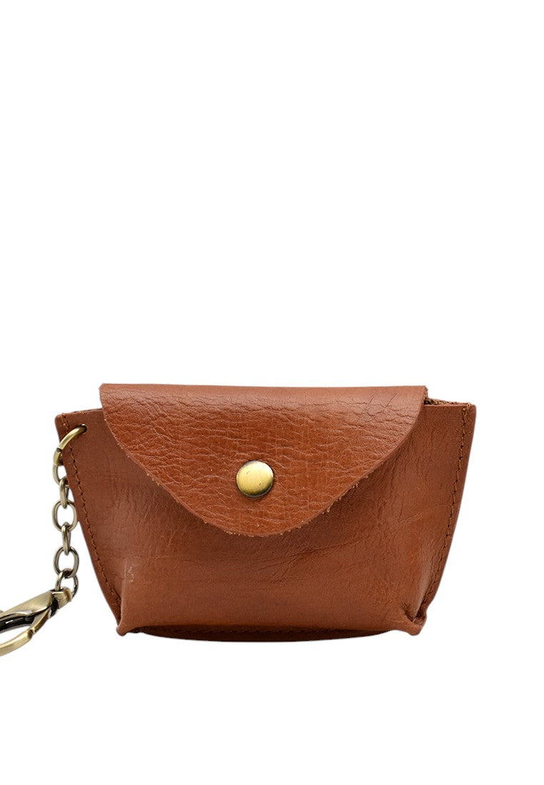 This purse is the perfect place to store loose change since it's made with durable top grain cow leather. This premium material naturally repels moisture and resists heat damage. Secure everything inside with the easy button snap. The inside of this wallet is unlined showing the natural back side of the leather.