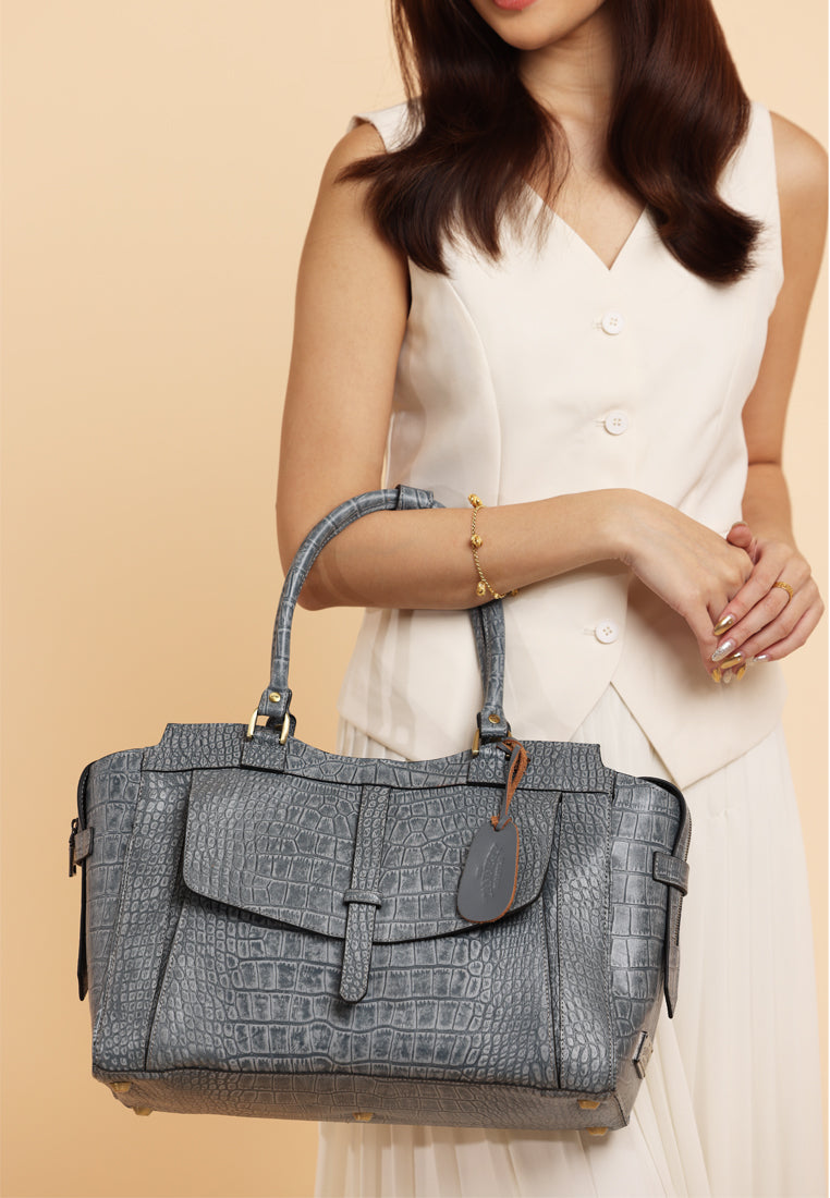 This is crafted with Crocodile embossed cow leather. Embossed leather is a luxury material, but it's also casual and easy to wear.