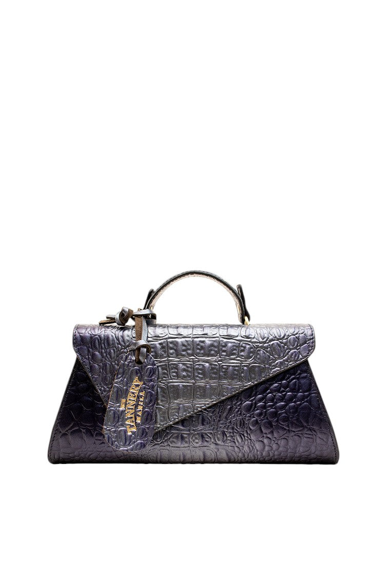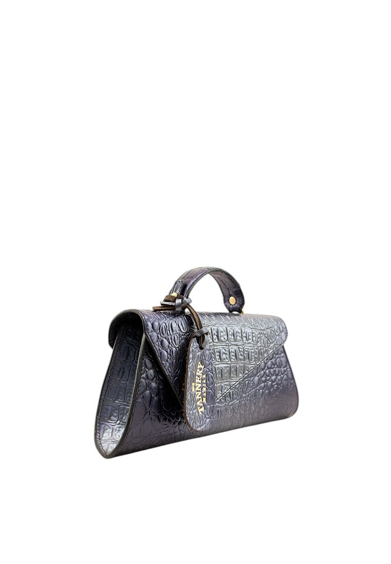 Cara features a structured body, envelope-style flap, and secure magnetic snap closure. It comes with a firm top handle for easy carrying, and a fully lined interior that fits your phone, wallet, keys, and more. Finished with brass-tone hardware and a subtle egg tag, it's a striking blend of form, function, and fearless style.