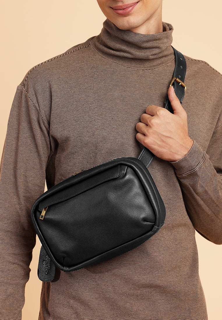 The Connor clutch features a spacious main compartment with a secure zip pocket for organization, plus an easy-access front pocket for small items. The sturdy back handle ensures comfortable carrying, while its classic color makes it a timeless travel companion.