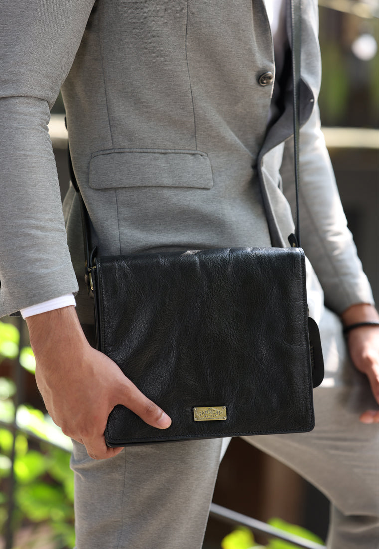 Perfect for your everyday needs, valuables are kept safe and organized with its interior and exterior zipper pockets. Easily compartmentalize your gadgets, wallet, keys, and other small things with the three slot divisions inside the bag. Its minimal details allow you to wear it with a smart casual suit or rugged jeans-and-shirt day. The bag is secured with a magnetic lock at the front and made more convenient with an adjustable buckled shoulder strap. The interior is lined with brown twill fabric.