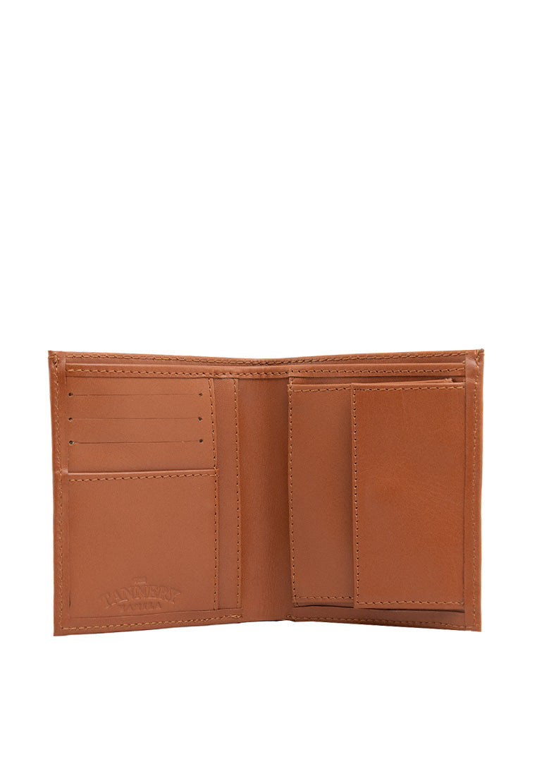 A bi-fold men's wallet to keep your currency, cards, receipts and coins. Inside this wallet you can fit 3 cards on the left and store coins on the snap pocket on the right.