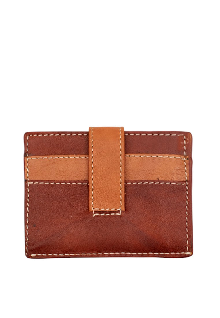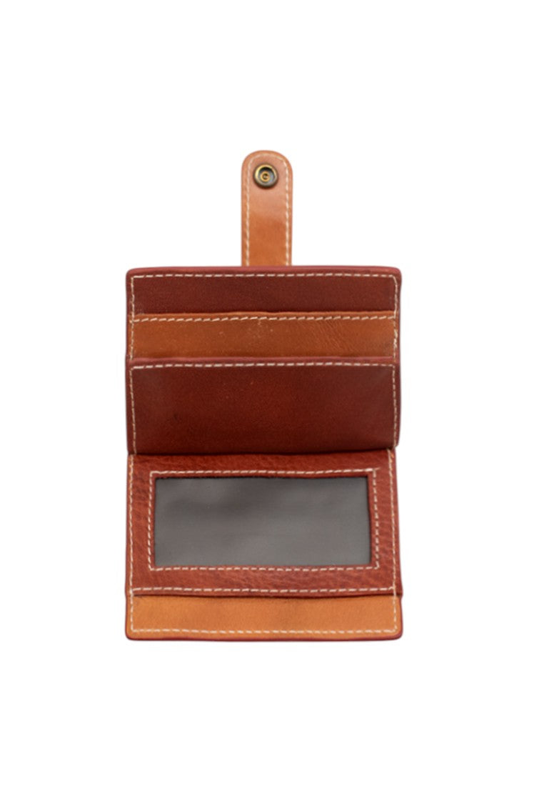 It features a subtle two-tone design and clean contrast stitching. It has multiple card slots for your daily cards, a snap-tab closure to keep everything in place, and an inside ID window for quick access. Slim, lightweight, and easy to slip into your pocket or small bag — simple, practical, and made for everyday use.