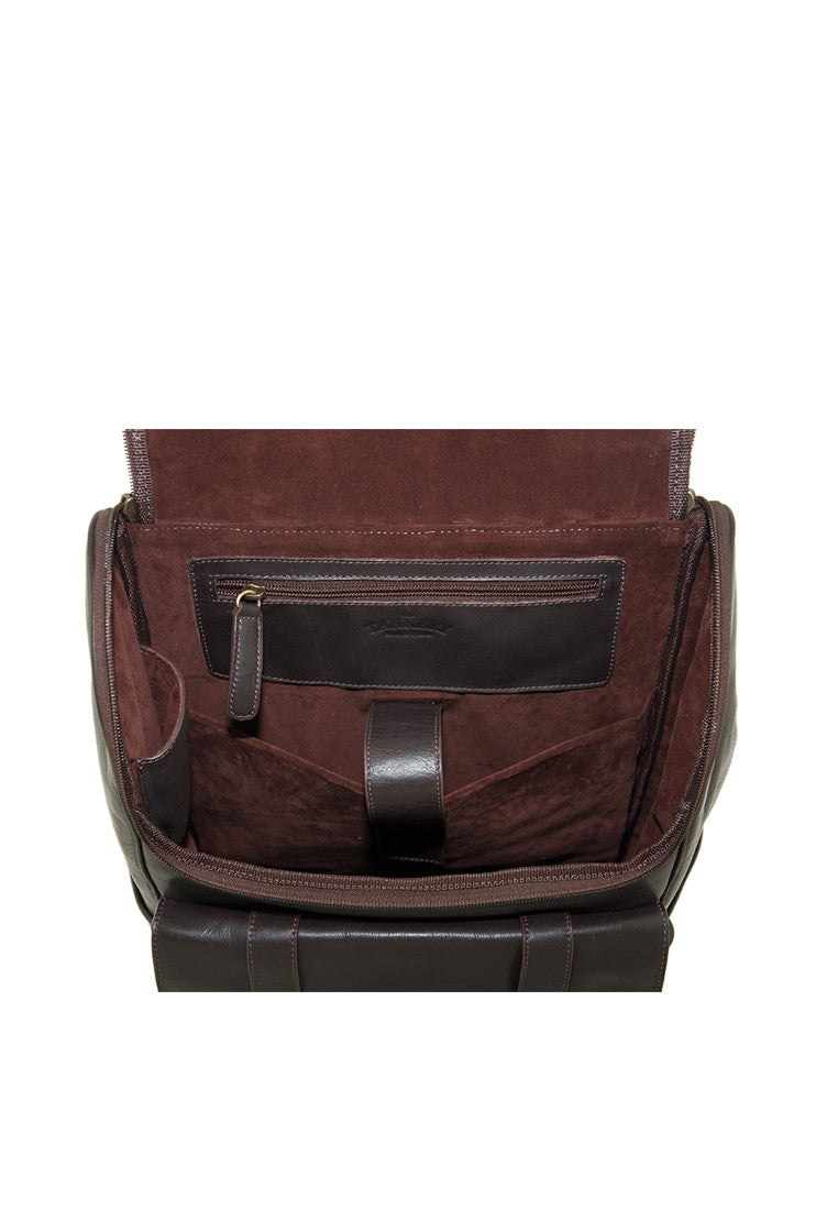 The size is perfect for short size folders and folios. Interiors are lined with suede fabric with a separate padded compartment that can house a netbook or up to an 11-13” inch model. Design also features a front pocket to store your power cord, tablet, or cellphone and two side pockets for small essentials. The padded back straps can also be easily adjusted to fit the height or comfort of the wearer. The Lorenzo also comes in a smaller size variant (Aaron Backpack).