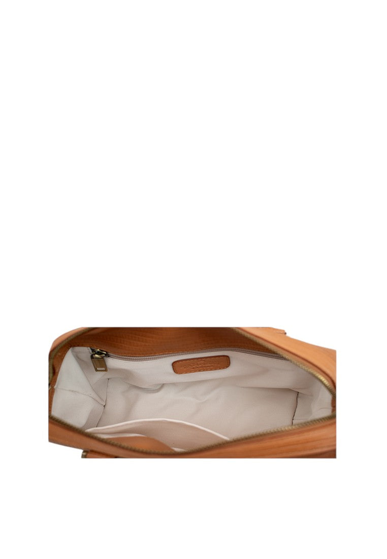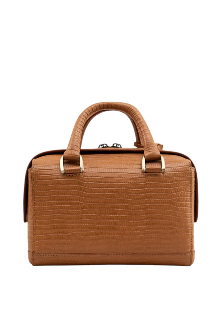Crafted from premium textured leather with a structured silhouette and elegant antique hardware. It features sturdy top handles, a detachable and adjustable strap for versatile wear, and a front zip pocket for easy access. Inside, a spacious fabric-lined interior with compartments keeps your essentials organized, blending style and practicality in one standout bag.