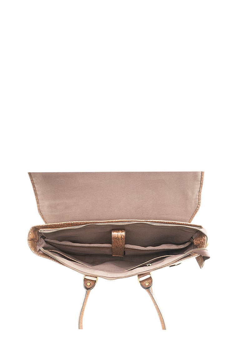 Polished metallic accents and comfortable, well-crafted handles provide a refined touch, while a detachable leather tag lets you personalize it. The external back storage offers generous space for quick-access items, and the main compartment keeps your essentials organized and secure with a metal zipper and leather flap. Whether you're in the office or meeting clients, Walter is the ideal companion to complement your professional style.