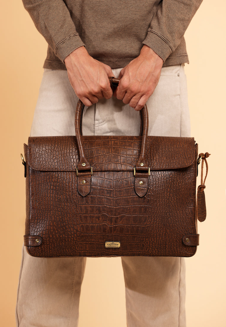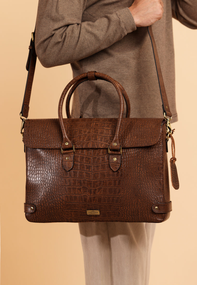 Make a statement with Walter—the laptop bag designed for the modern young professional who exudes confidence and purpose. With its sleek, rectangular shape and rich embossed leather, Walter perfectly balances style and functionality.