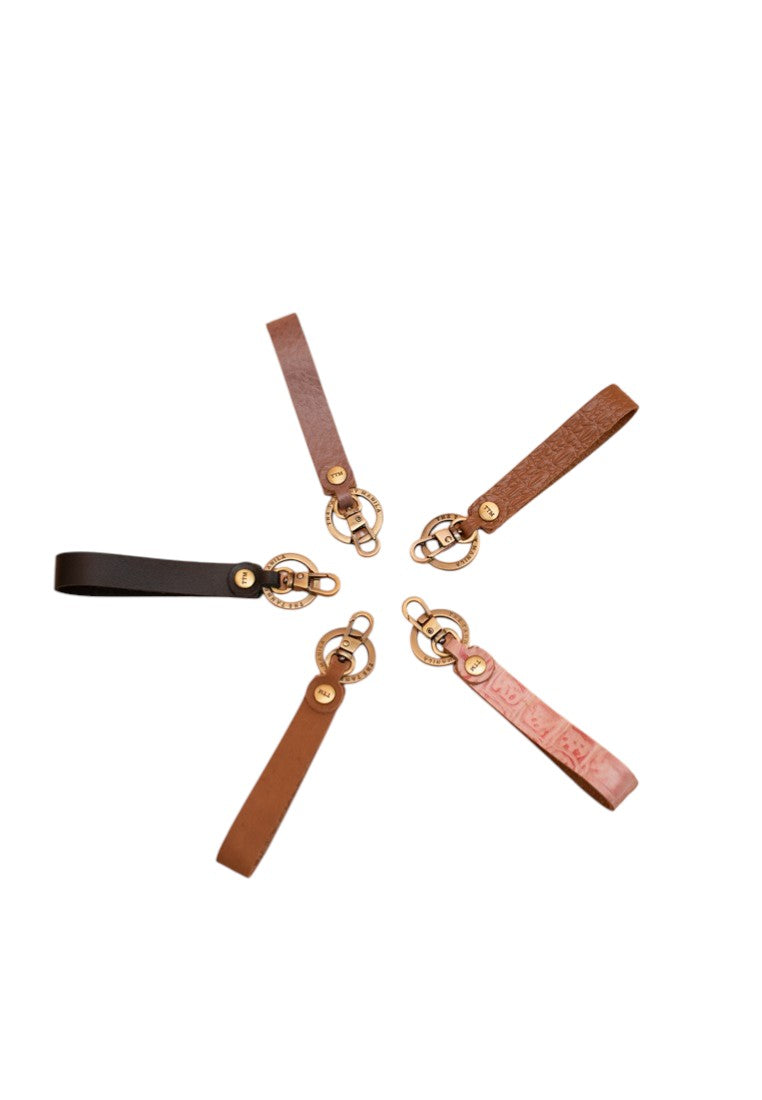 Designed with a streamlined silhouette and made from genuine leather, it features a comfortable hand loop and durable metal clasp for secure attachment. Hook it onto your keys or your favorite bag for an added touch of character — available in both smooth and embossed finishes. Practical, versatile, and made to last.